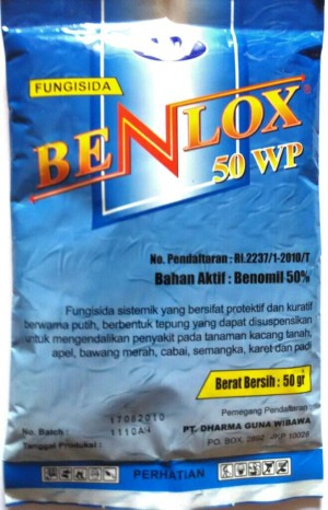 Fungisida sistemik yang bersifat Protektif & Kuratif berwarna putih, berbentuk tepung yang dapat disuspensikan.